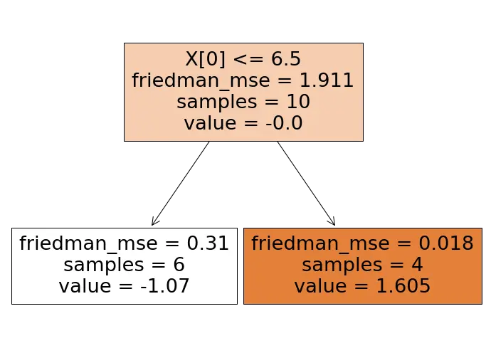 gbdt = GradientBoostingRegressor(n_estimators=5,max_depth=1)