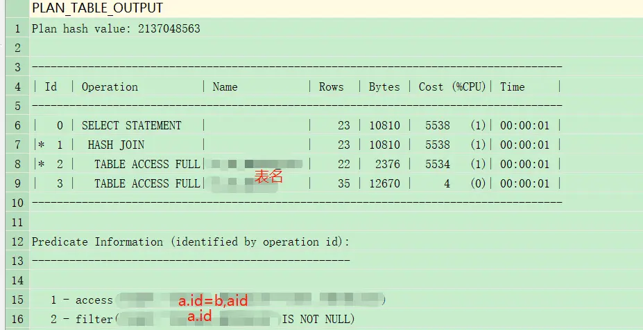 explain plan for SELECT * from A a ,B b WHERE a.id=b.aid;