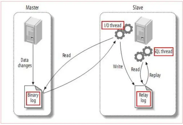 - slave将master的binary log events拷贝到它的中继日志(relay log)