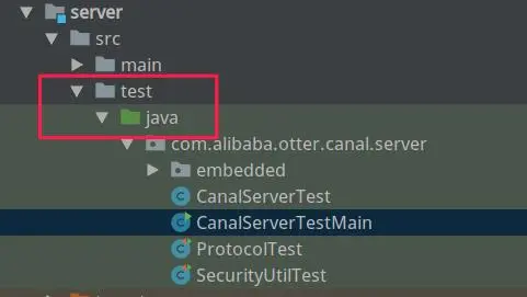 但是另外稍微遗憾的是 canal 提供提供的示例代码中只包含了 client 端相关的代码,并没有包含服务端(server),故我们将目光放到其单元测试中,如下图所示: