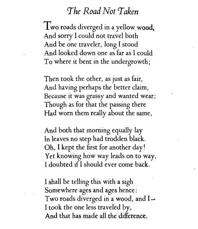 末了,在这个下午茶的时光,录美国诗人罗伯特·弗罗斯特的诗歌一首——The Road Not Taken,作为结尾,愿你悦纳和享受每一个不同的选择和独特的当下,因为不管情况如何,每一刻都是此生独一无二的时光,enjoy :)
