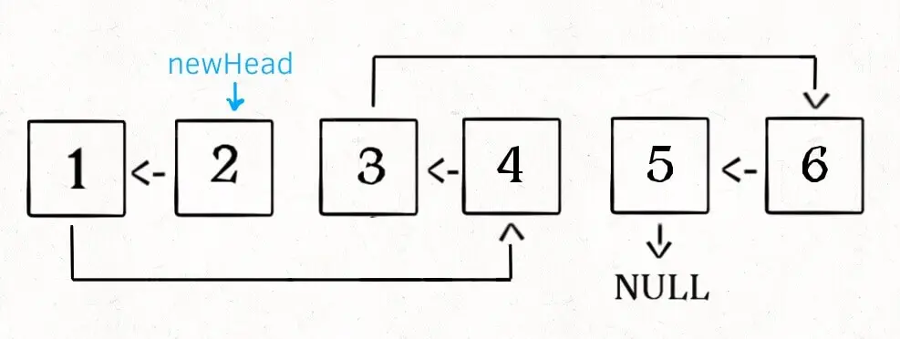 # 为下一次交换重新初始化 head 和 prev_node