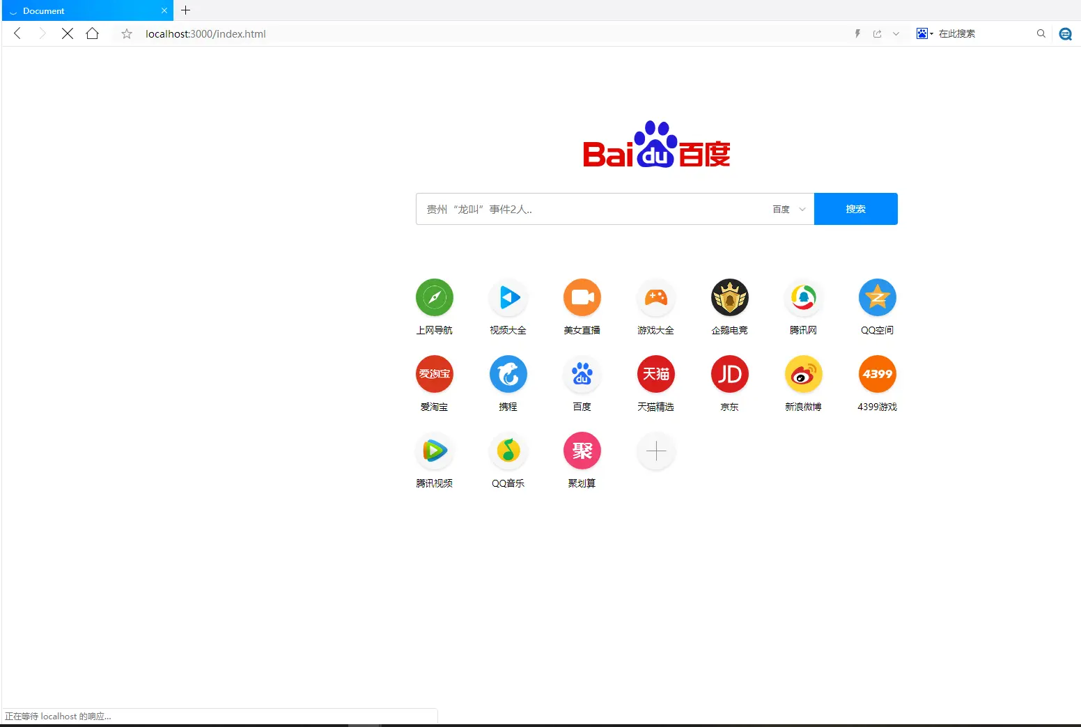 保存后,通过 node index.js 重启服务器,然后在页面中打开http://localhost:3000/index.html,