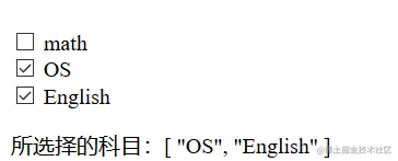 实现多个多选框,点击一个就将选择的科目显示在数组中