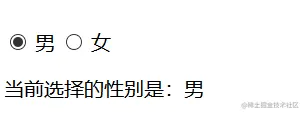 <input type="radio" id="one" value="男" v-model="sex">