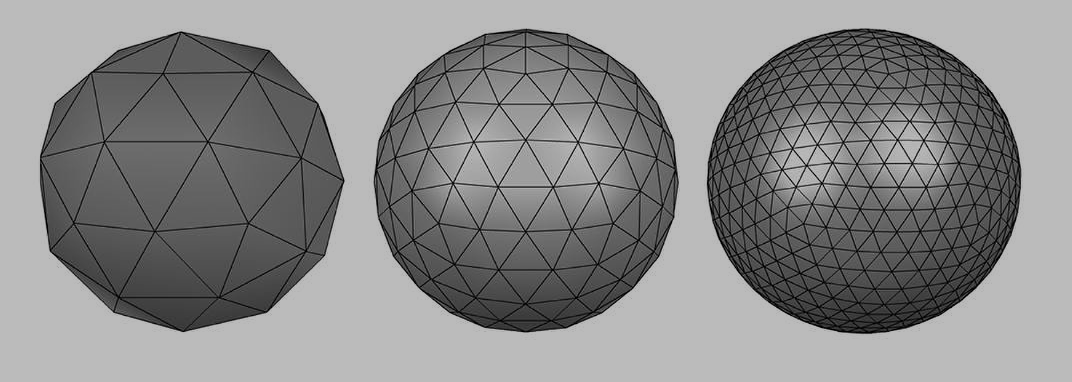 多边形网格有很多的局限性,因为网格是离散的表示,曲面只能通过组成网格的多边形平面进行分段近似,也就是说使用多边形平面越多,曲面的近似表示效果就越好。