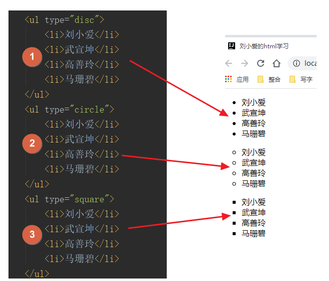 「①type="disc"」