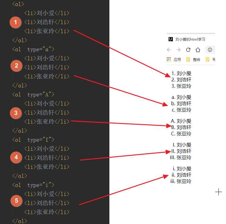 「有序列表」:ordered list,简写就是ol。