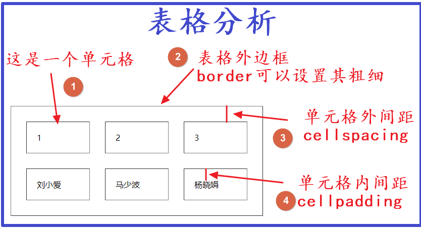 ②表格外边框:border,边界的意思,用其可以设置外边框的粗细。