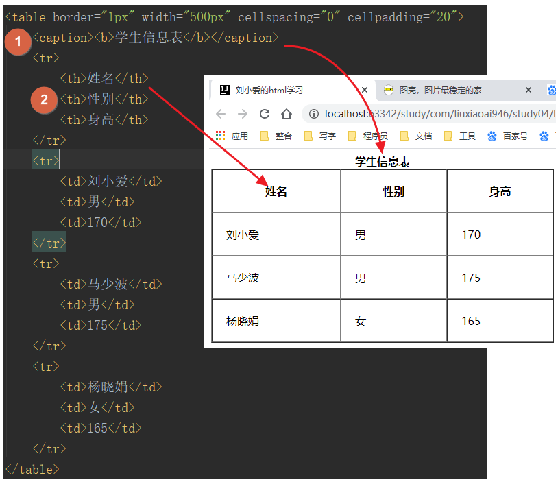 标题的意思,用以说明表格的标题,我这边还用了一个b标签将其给加粗了。