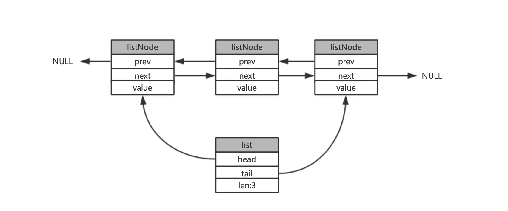 listNode *tail; /* 表尾节点 */