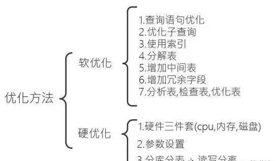笔者将优化分为了两大类:软优化和硬优化。软优化一般是操作数据库即可;而硬优化则是操作服务器硬件及参数设置。