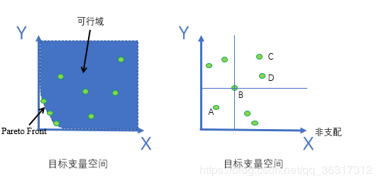 在右图中,可以看出,B支配C,D两点,在A点,B是被支配的,其余空间则是非支配