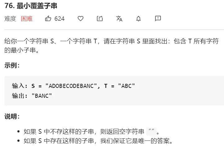 unordered_map<char, int> hashT, hashWindow; //两个哈希表分别表示字符串t和当前子串中各个字符出现的次数