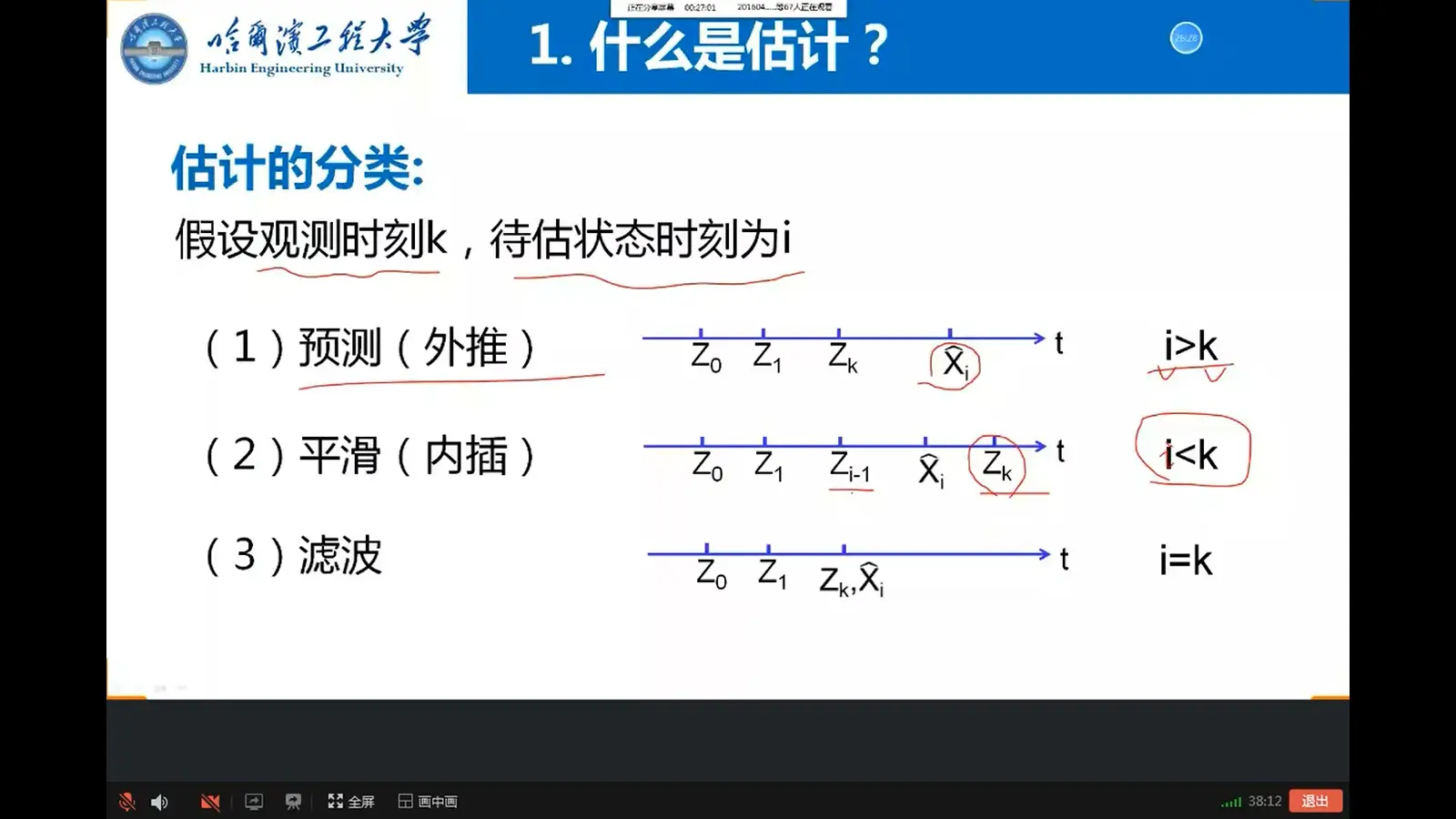 滤波:利用当前时刻的量测估计当前时刻的状态=实时估计