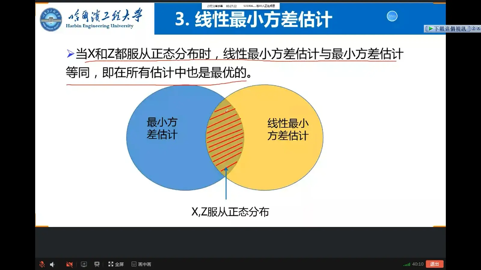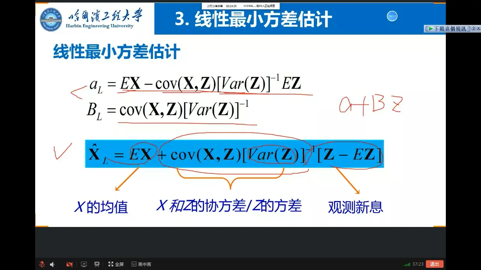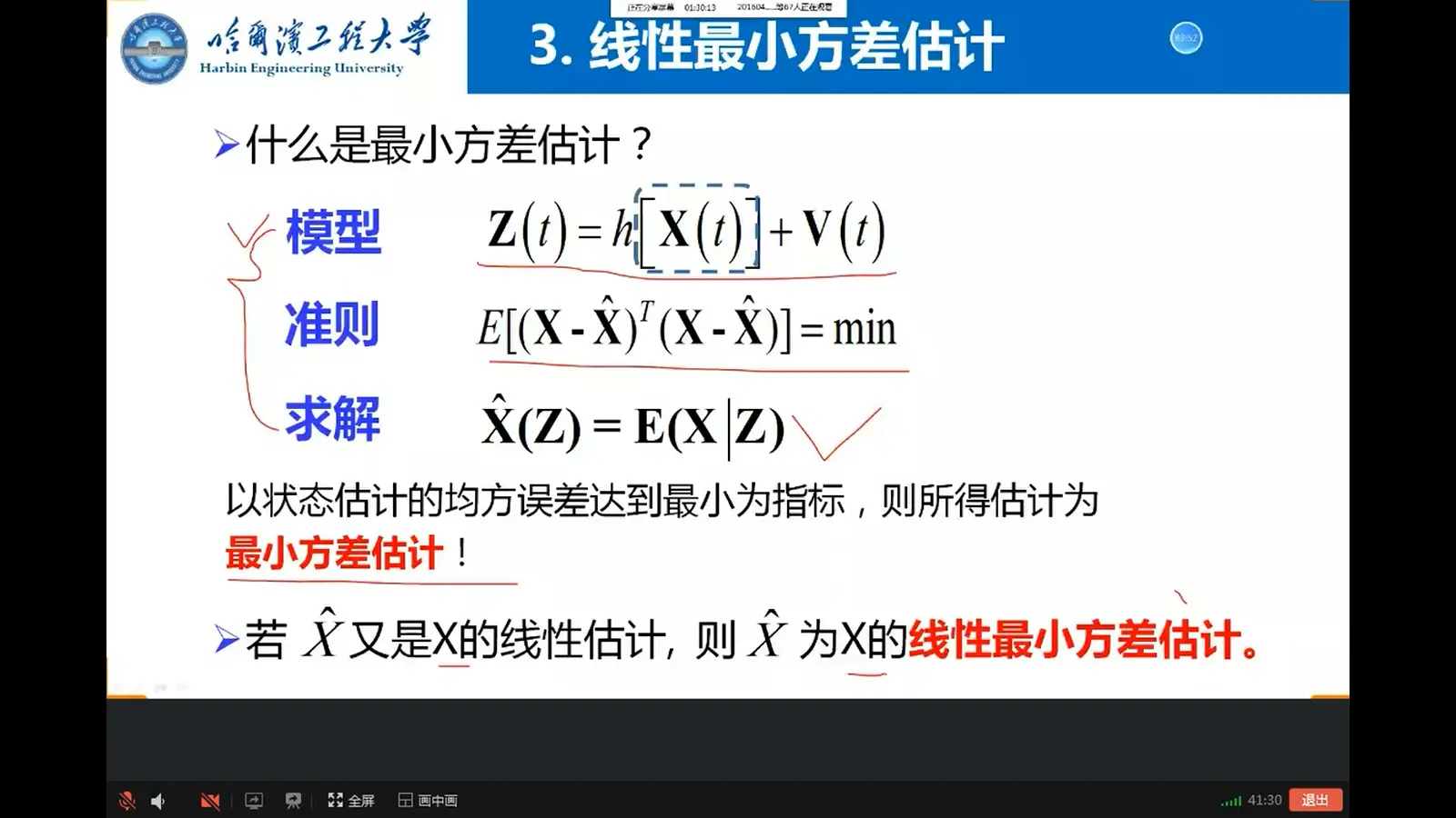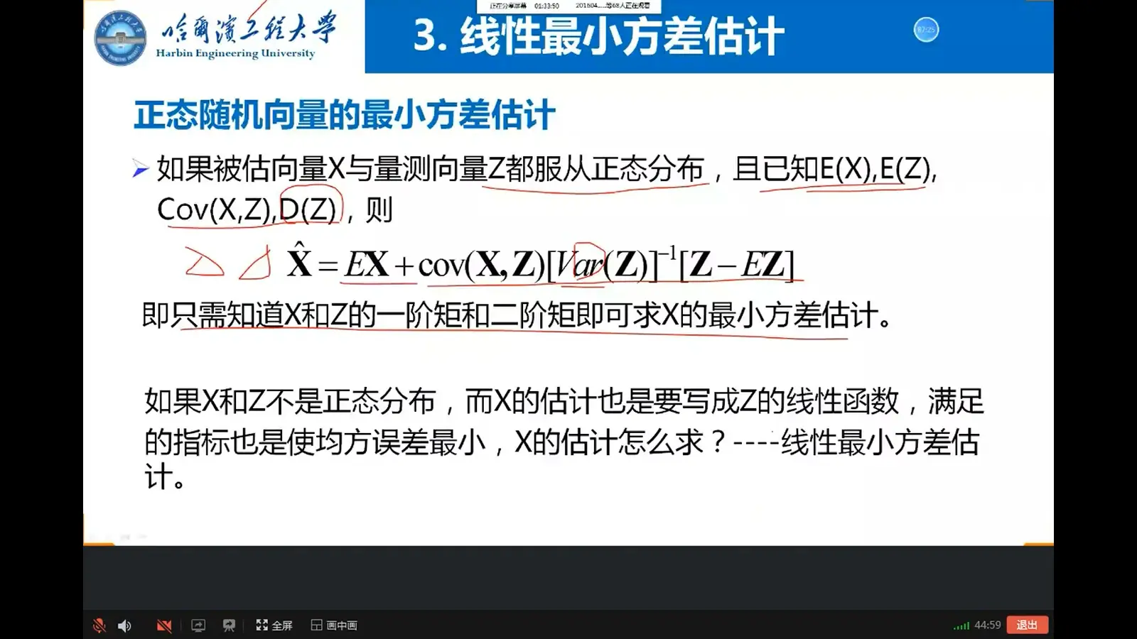 - 如果X、Z服从正态分布,则线性最小方差估计和最小方差估计等同,是在所有估计中的最优者