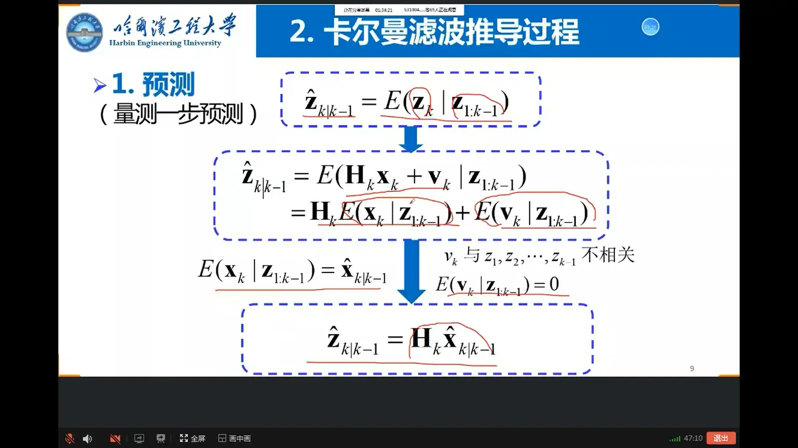 - 1建立模型: zn=Axn+vn。建立模型有假设--卡尔曼滤波:线性模型,高斯白噪声。若非线性就线性化它--进行一阶泰勒展开,忽略高阶项(扩展卡尔曼滤波)。若噪声不是高斯的,也用其他方法