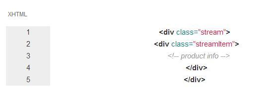 每一个 stream item 组件都有一个缩略图和一个特色的产品信息。