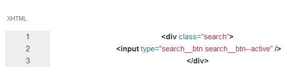 在上面的示例中, search 是块(block),search button是它的元素(element)。如果你想要更改按钮的状态,我们可以为按钮增加一个修饰符,例如 active 。