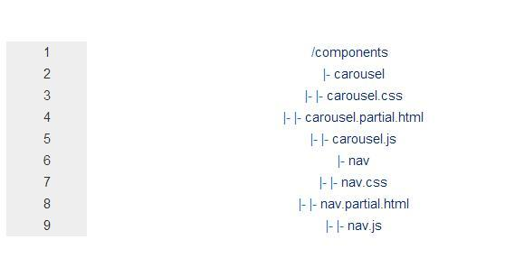 另外一个常见的组织文件的方式是按照功能将文件分组。举个栗子,如上面所示,所有和轮播效果组件有关的文件都被分类到了一起。采用这种方式可以让你更容易的找到相关文件。