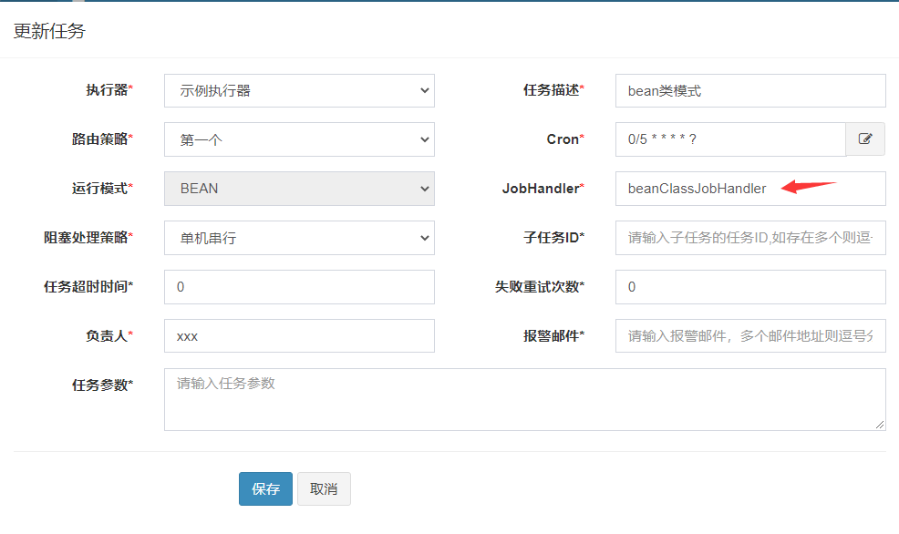 // 注册BEAN模式(类形式),执行器名为beanClassJobHandler