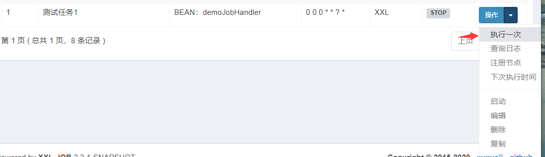 beanClassJobHandler,需要与代码中自定义的相同。保存后,选择操作-执行一次;即可以在日志中心中看到一条成功数据,选择操作-执行日志即可看到如下: