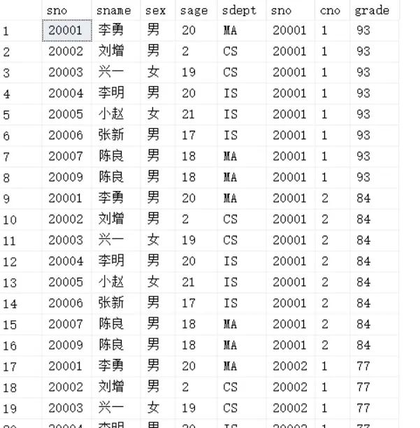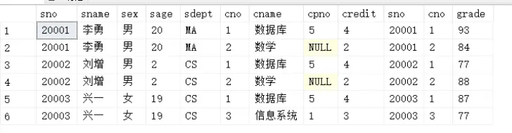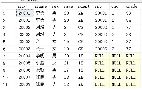-- PS:s1.*指student表的所有字段,如果select * 的话,就会显示t1,t2的所有字段(搞出左右分别相同的字段)
