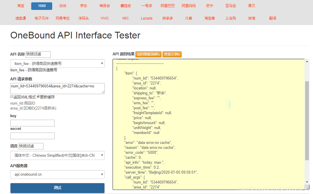 item_fee - 获得1688商品快递费用