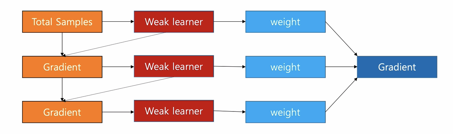 GBDT 与提升树的区别是残差使用梯度替代,而且每个基学习器有对应的参数权重