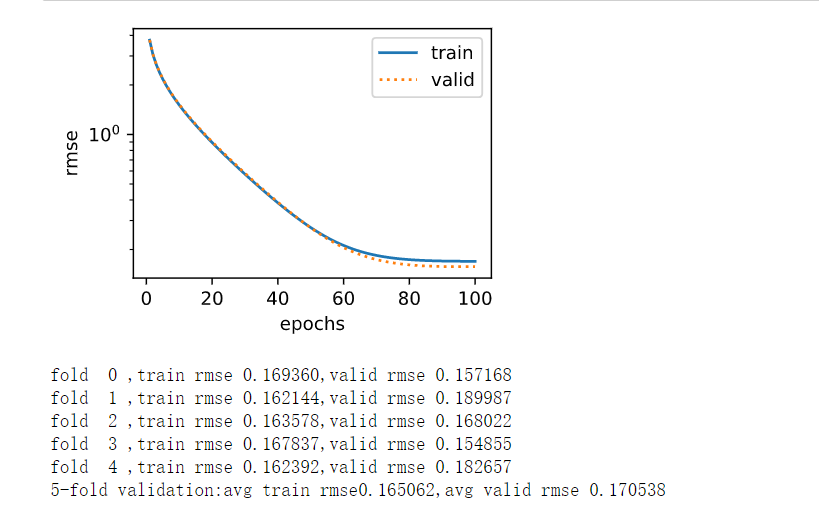 print('fold % d ,train rmse %f,valid rmse %f'%(i,train_ls[-1],valid_ls[-1]))