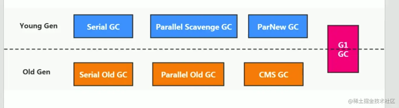 YGC:年轻代GC,全程STW的,复制算法MixGC:混合GC,回收全部年轻代和部分老年代,并发结合并行Full GC:全堆GC,串行、单线程、STW的,不会单独出现,只有MixGC失败才会触发FGC