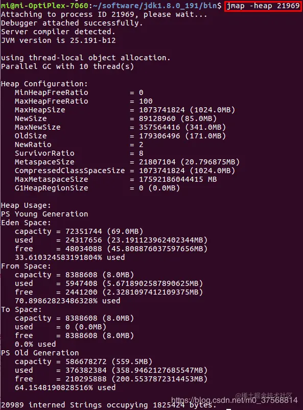 一般我们会使用这个命令来查看堆内存情况,有张图: