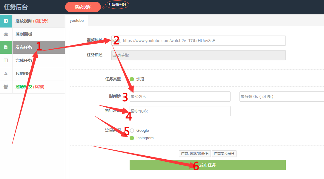 然后我要教你如何用赚取的积分,来换取别人观看你的视频观看量。