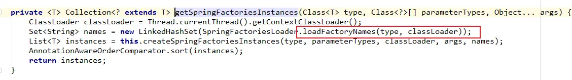 再点进去getSpringFactoriesInstances(type, new Class[0])