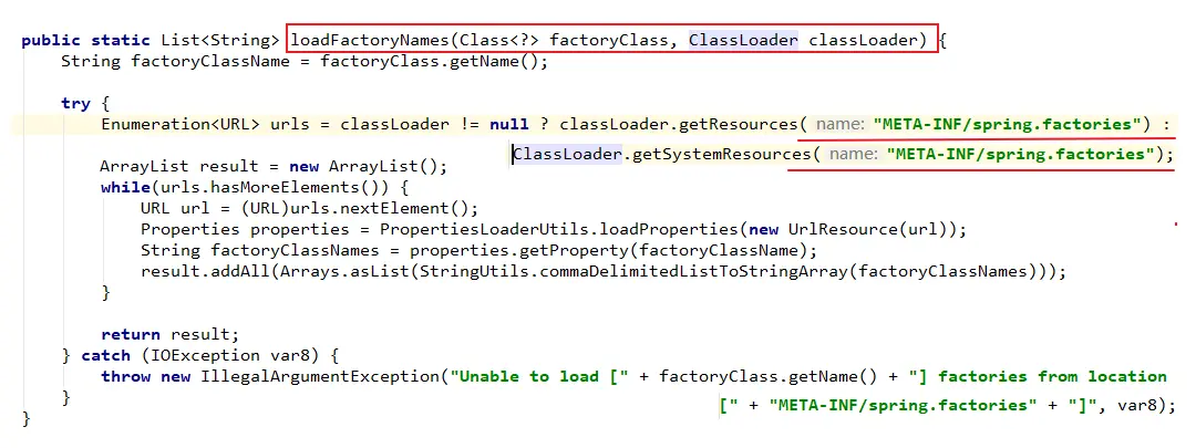 再点进去loadFactoryNames(type, classLoader)