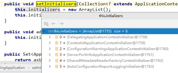 this.setInitializers(this.getSpringFactoriesInstances(ApplicationContextInitializer.class));