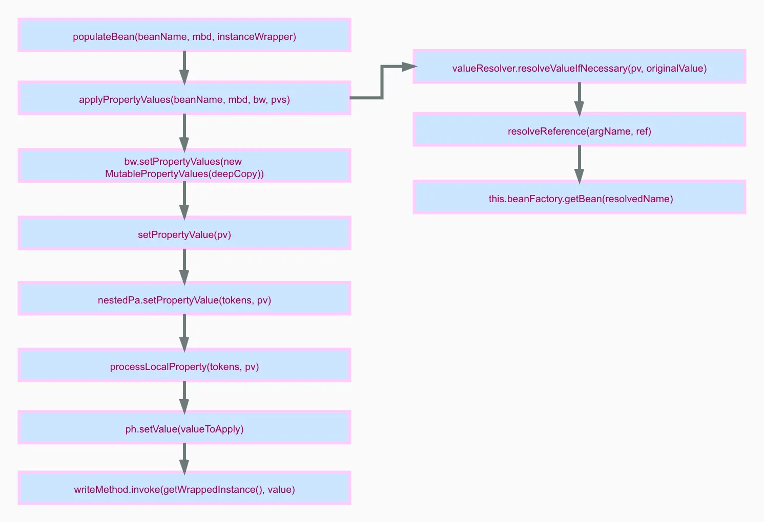 首先深入 doCreateBean() 方法中的 AbstractAutowireCapableBeanFactory.populateBean(String beanName, RootBeanDefinition mbd, @Nullable BeanWrapper bw)