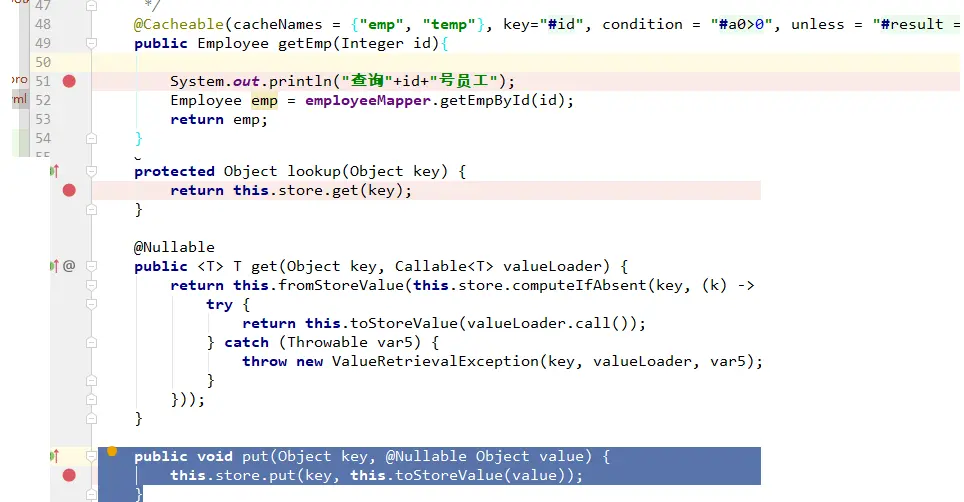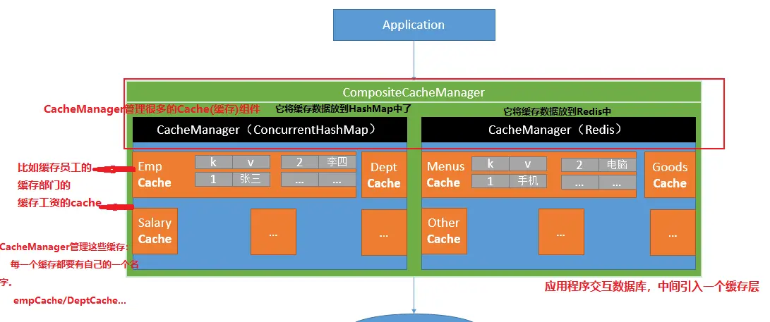 默认之前用的是CocurrentMap的缓存管理器帮我们创建cache组件,缓存组件来给缓存中进行数据操作。