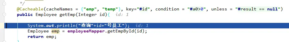 @Cacheable(cacheNames = "dept" , key="#id" )