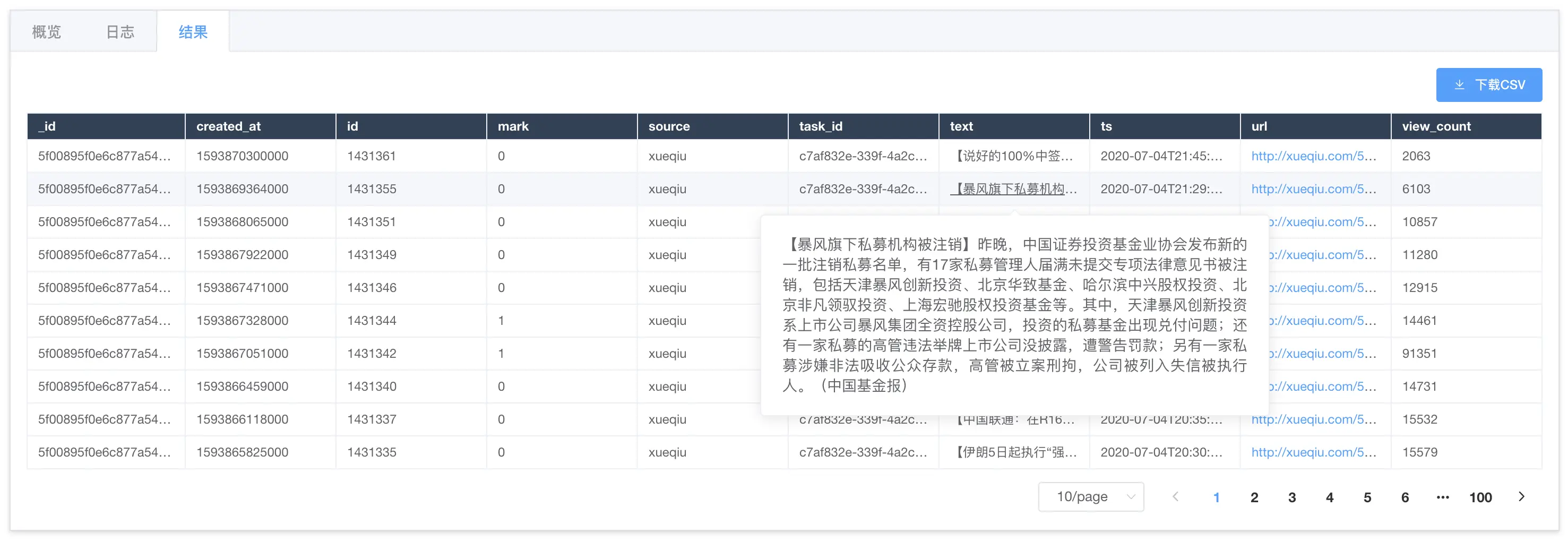 - 在 “爬虫详情” -> “结果“ 中查看结果数据。