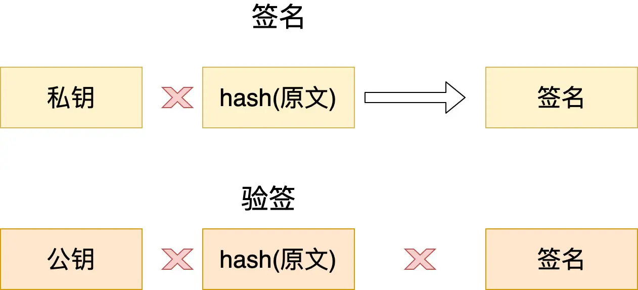 原理:使用非对称加密技术及hash技术,非对称加密生成一对公私钥对,私钥用于签名,公钥用于验签。签名的对象为内容的hash。