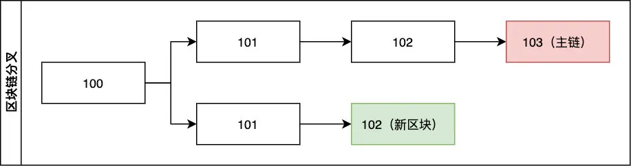 上图中,区块高度为103的区块到来后,新的主链产生。这时候,会用当前主链的102,与新主链的103向前遍历,找到分叉点101区块。(注意:)