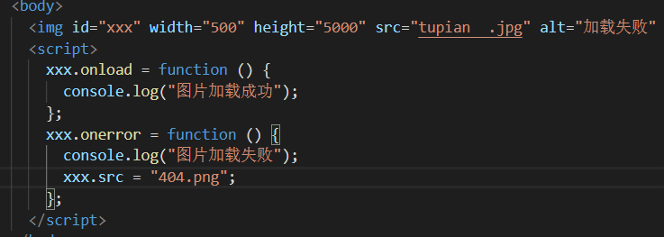 - onerror:监听事件是否加载成功,onerror代表加载失败。例