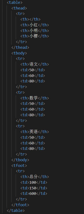 table标签是列表标签,且其下只能有 thead、tbody、tfoot三种标签;tr、th、td标签只能写在上述三种标签内