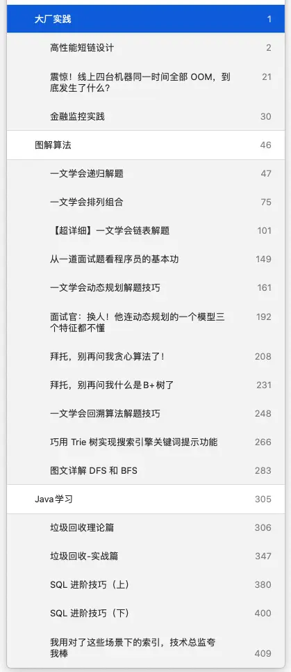 主要分「大厂实践」+「图解算法」+「Java学习」三部分,文章平均每篇被转载 15 次以上,相信大家看了之后不管是面试还是对于基础知识的夯实都大有裨益,这里简单放出几条读者的评价吧,以证明所言非虚^_^,感谢大家的认可!