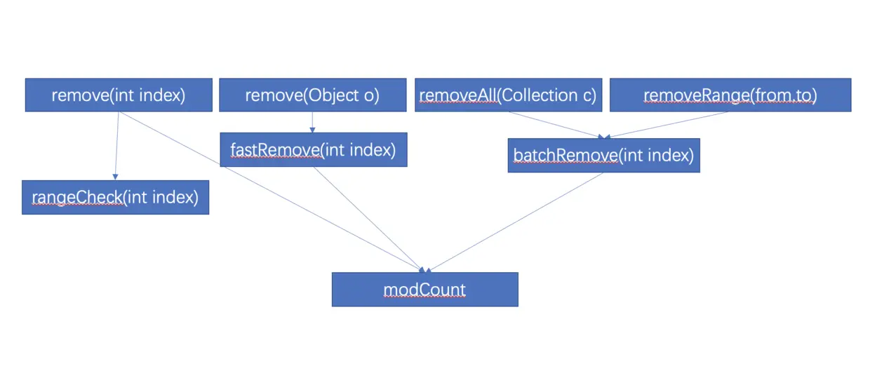 remove操作也是一个结构性变化的操作,我们主要看看几个修改modCount的操作: