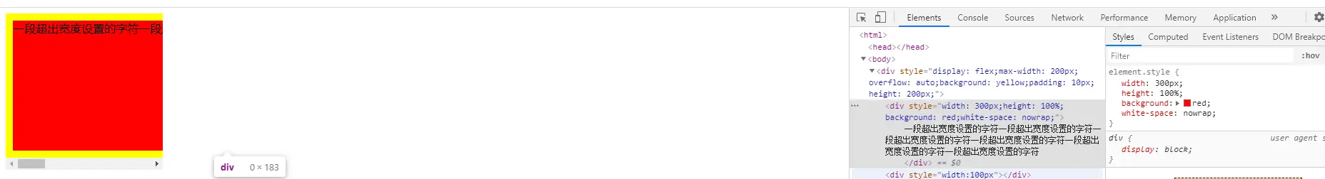<div style="width: 300px;min-width:0;height: 100%;background: red;white-space: nowrap;;">
