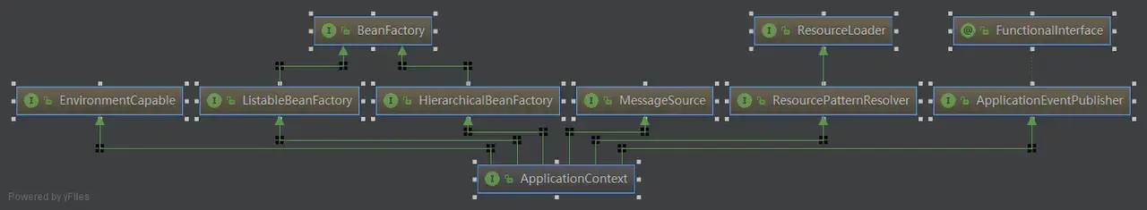 两者间继承关系如下图,可见ApplicationContext间接继承自BeanFactory。