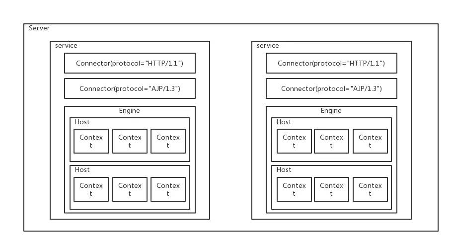 对外提供服务,可以包含多个Connector,但是只能包含一个Engine,Connector的作用是接收外部的请求,Engine的作用是处理请求。