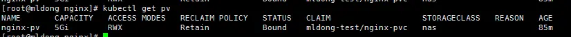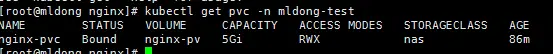 kubectl get pvc -n mldong-test
